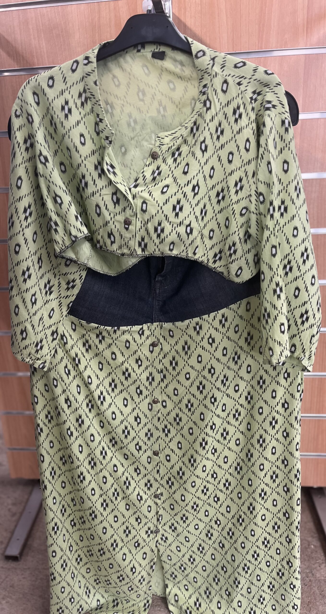 Ensemble haut+ jupe évasée de tissus recyclés. Taille : XL/XXL