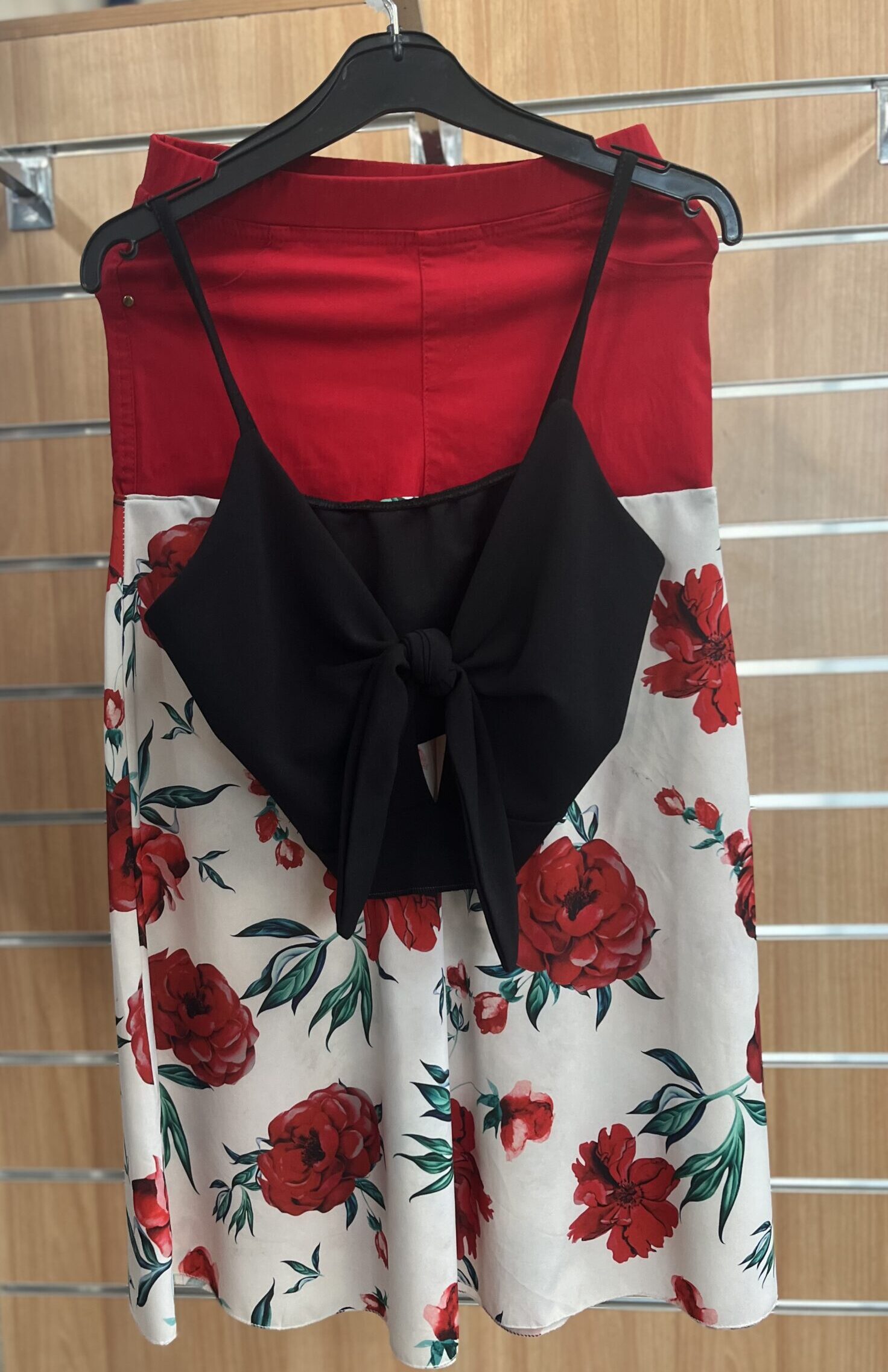 Ensemble crop-top + jupe évasée à fleurs de tissus recyclés. Taille : S